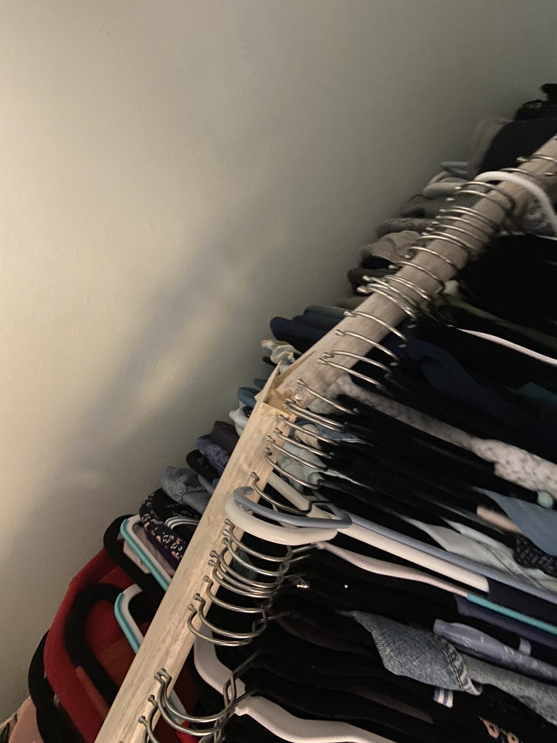 I should have seen it coming from the moment I finished hanging up all my clothes. I mean this pole had a very defined bend in the middle and it was only a matter of time before it just collapsed under all the weight.